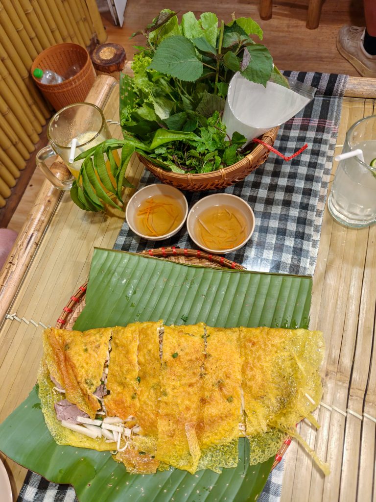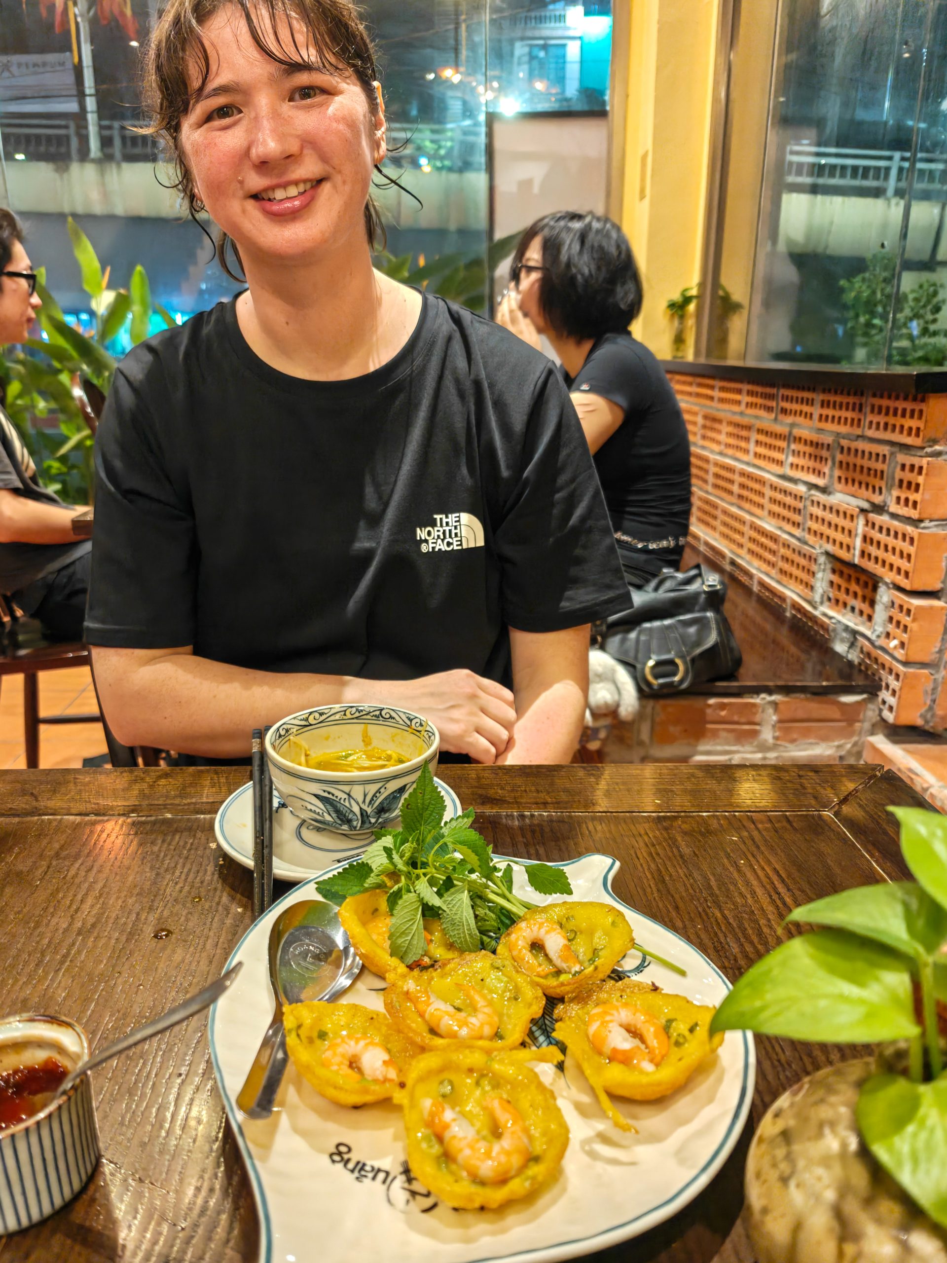 Bánh Khọt. Lil savoury shrimp pancakes. Wrapped in herbs and dipped in nuoc cham of course. (Everything is dipped in nuoc cham.)