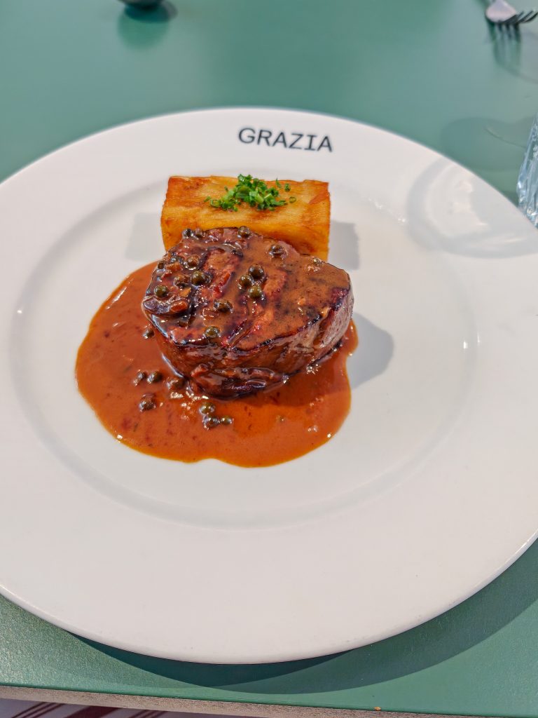 We had my work Christmas party like a week and a half after our Halloween Bake Off haha! It was delicious. I picked steak for my entree for the exact opposite reason our boss doctor didn’t pick the steak: “I could have steak at home!” (We never have steak at home.)