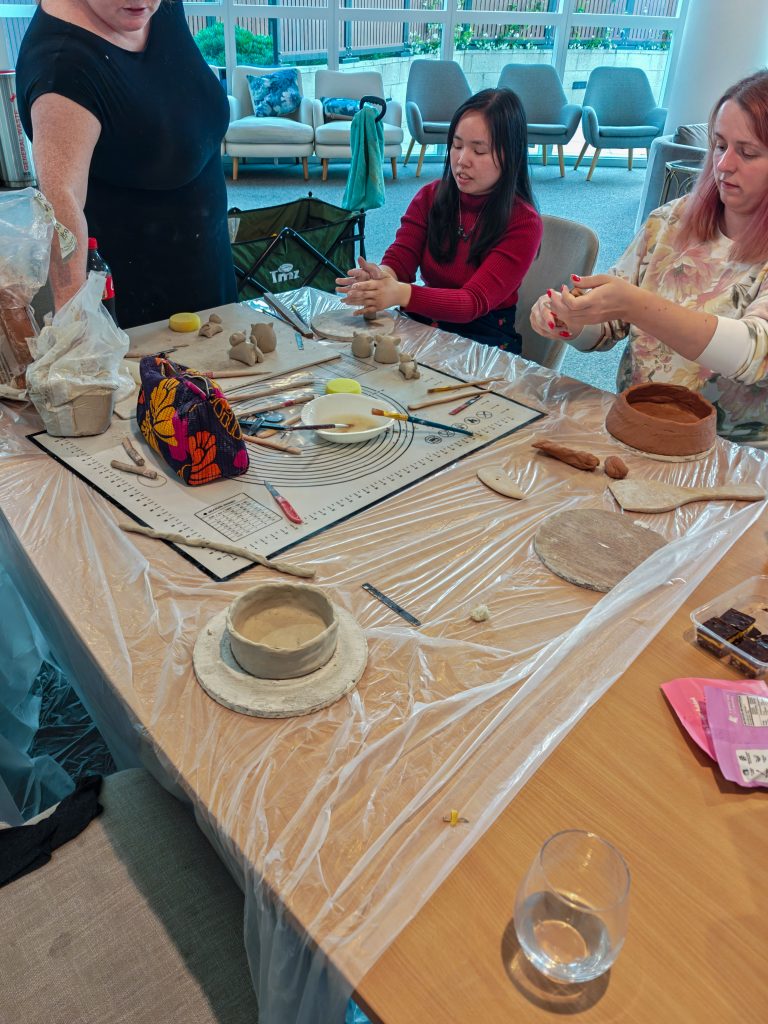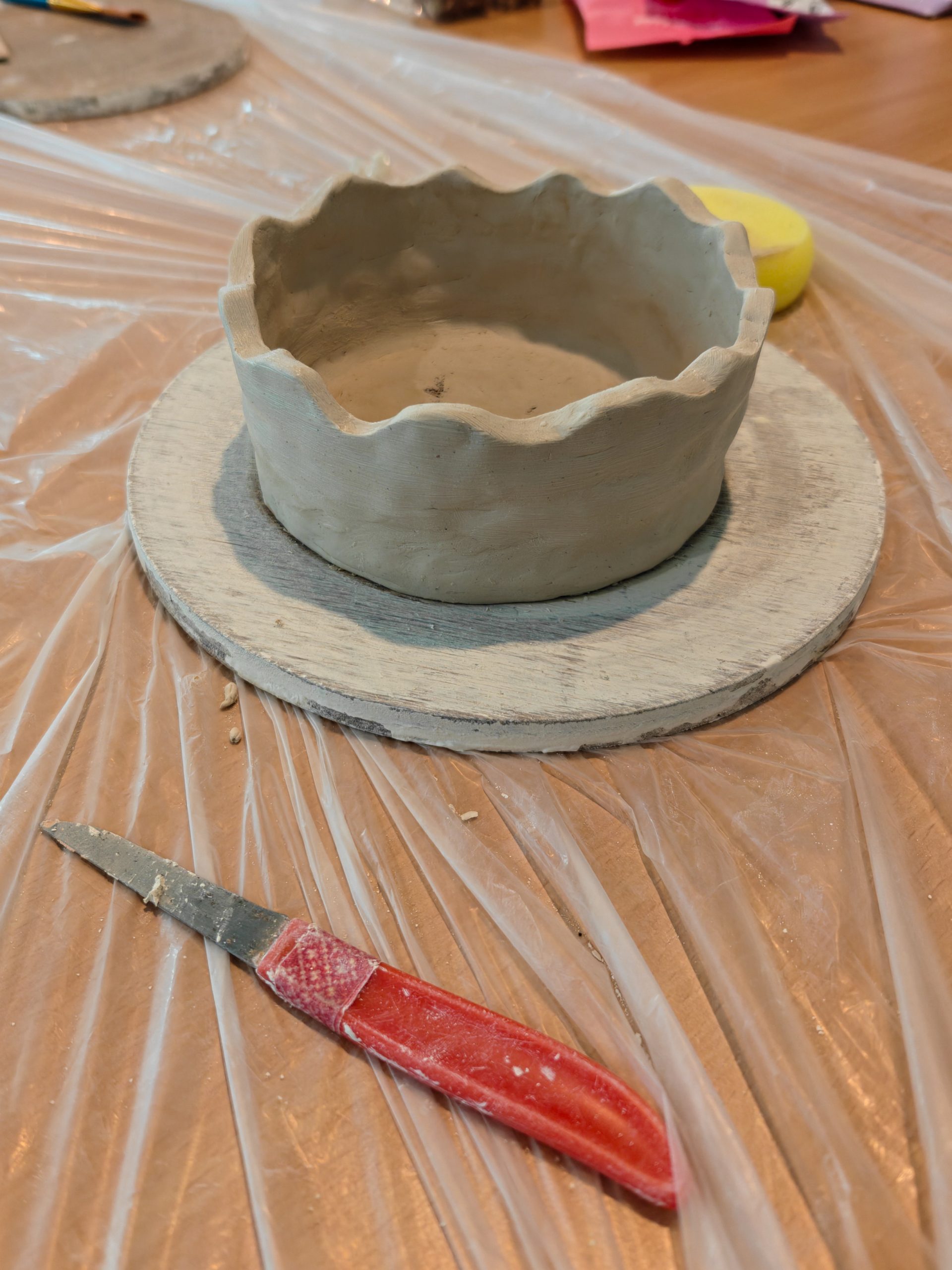 Then we caught the bus to Bis’s for games, crafts, and dinner. I opted to do hand building with Jen and made a cute sturdy scalloped ash tray dish.