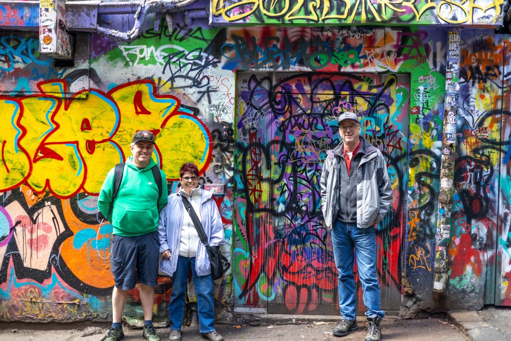 We wandered around some alleyways. I took them to the Sofitel toilets, obviously, and we walked all around the CBD.